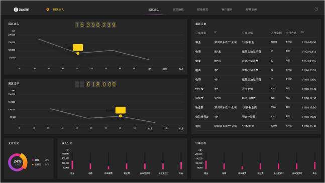 精準(zhǔn)盤點(diǎn),一手掌握各項(xiàng)經(jīng)營數(shù)據(jù)租金、停車費(fèi)、物業(yè)費(fèi)、訂單分布情況等
